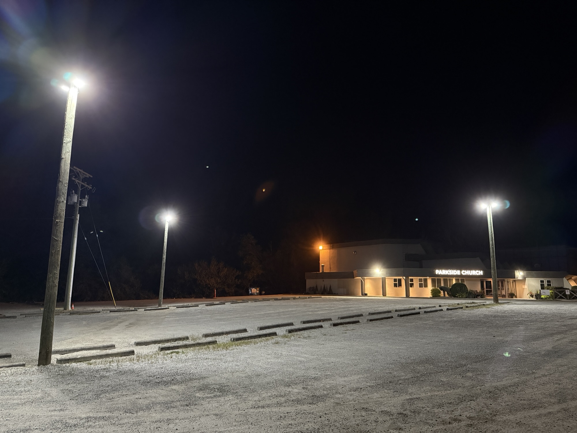 Thanks to the generosity of Parksiders, we now have light in our parking lot! Thank you to all who helped with the install.